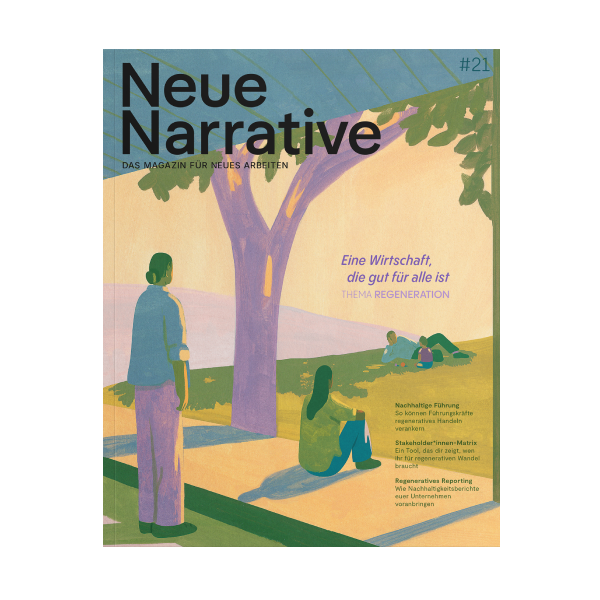 Eine Wirtschaft, die gut für alle ist. Das ist schon seit der ersten Ausgabe von Neue Narrative unser Ziel. Doch was heißt das konkret? Gut für alle heißt, wenn die Wirtschaft Mensch und Umwelt dient – und nicht andersherum. In dieser Ausgabe sind wir deshalb folgenden Fragen nachgegangen: Was ist unsere Vision für eine regenerative Wirtschaft? Wie transformieren wir Organisationen, die noch nicht regenerativ wirken? Und welche Fähigkeiten brauchen wir, um uns auf diese Veränderung einzustellen?